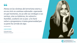 Entender la verdad de las víctimas del terrorismo es entender que éste es una manifestación perversa y extrema de la política que se desarrolla ejerciendo la violencia contra unas personas que han sido